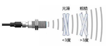 檢測(cè)表面光滑和平整度很高的目標(biāo)物,傳感器需要與被檢測(cè)物正面以90°±3°的角度安裝。防止安裝角度過大,傳感器接收不到反射的聲波。